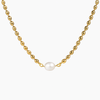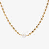 A delicate gold-tone beaded necklace featuring a luminous central pearl. Designed for effortless elegance, this piece adds a soft feminine touch to any outfit.