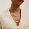 A luxurious triple-layer necklace combining modern chains with a radiant pendant. Regal creates an elevated, full-styled look effortlessly.